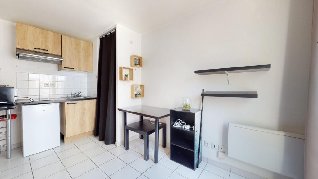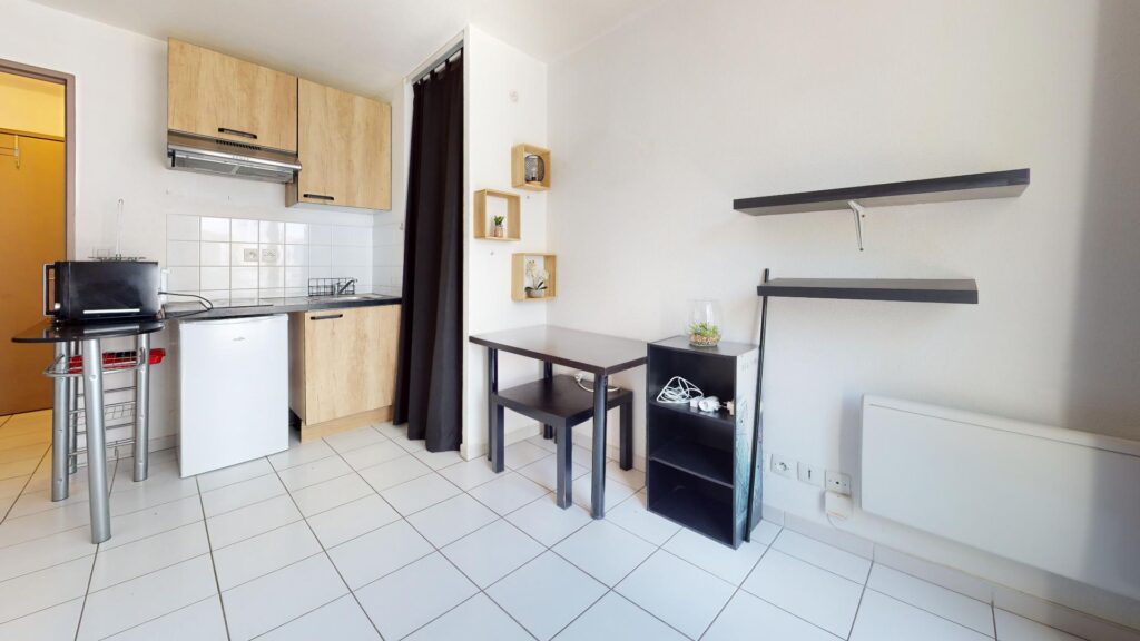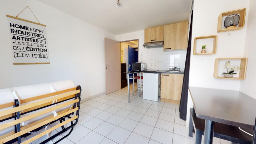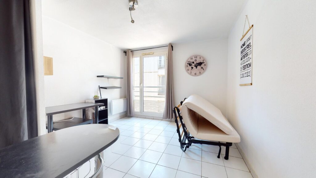 Ce studio dispose d’une entrée, d’une salle de bain, et d’une pièce de vie transformable en pièce de nuit grâce à son canapé dépliant.