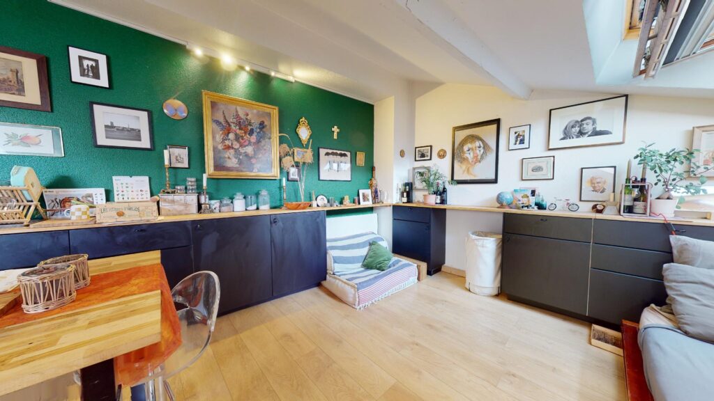 L’aménagement de ce studio vous permet de séparer l’unique pièce à vivre en plusieurs espaces.