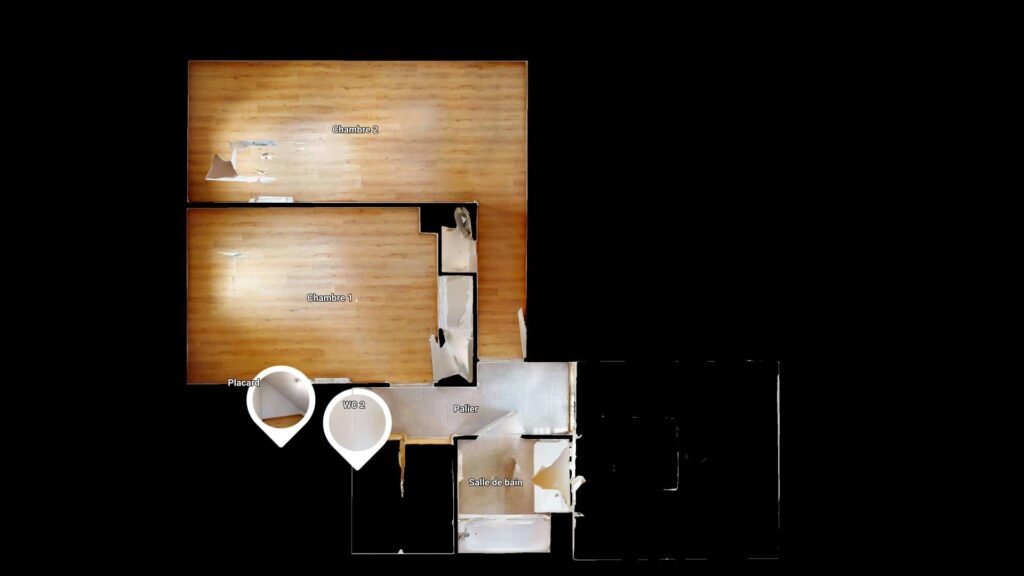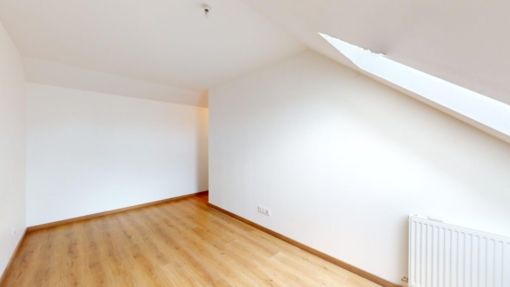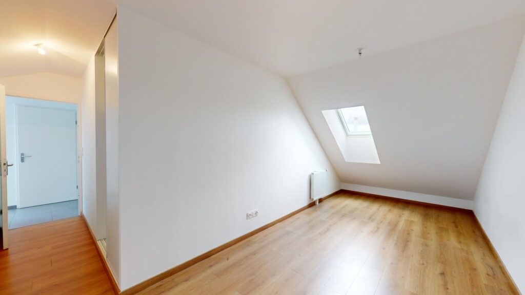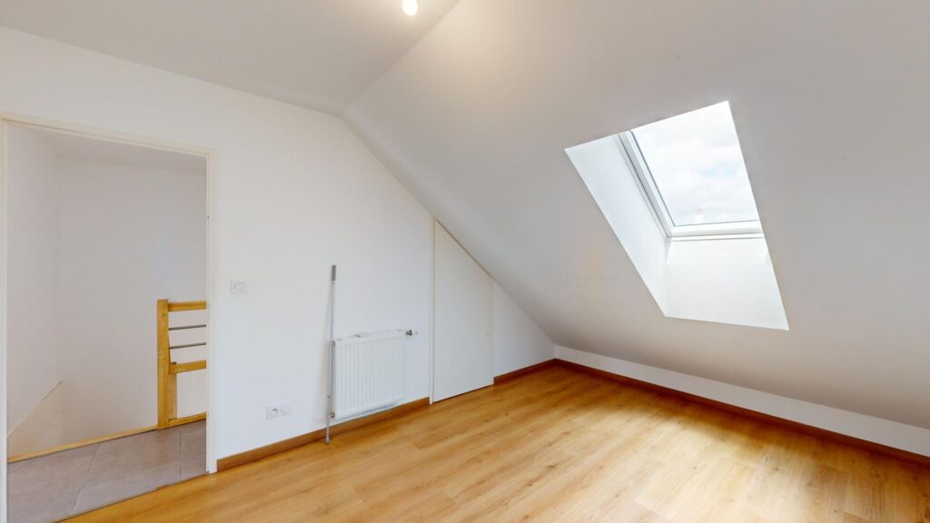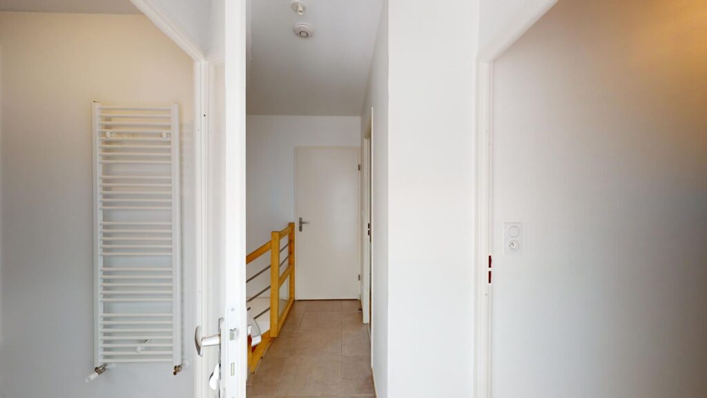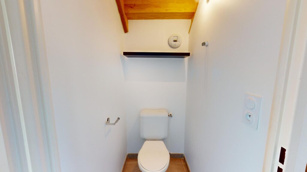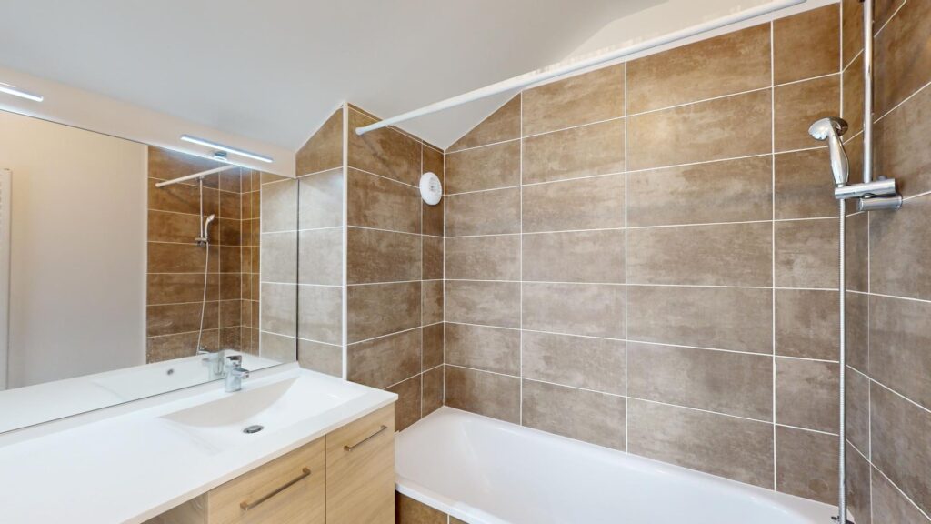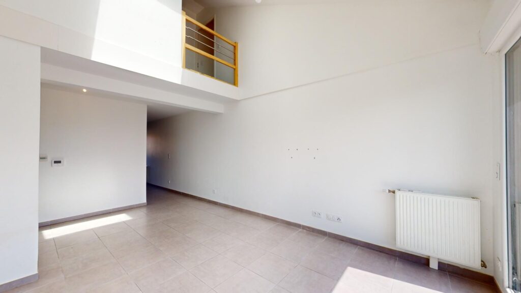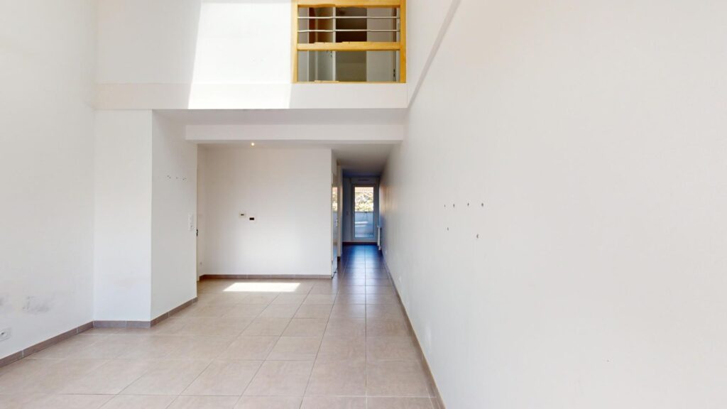 Cet appartement en duplex propose un grand séjour, une cuisine semi-équipée de meubles de rangements, d’une plaque de cuisson ainsi qu’une hotte, d’un Wc au niveau principale. L’étage quant à lui propose deux chambres avec placard mural, une salle de bain avec baignoire, meuble vasque, miroir et sèche serviette et un Wc.