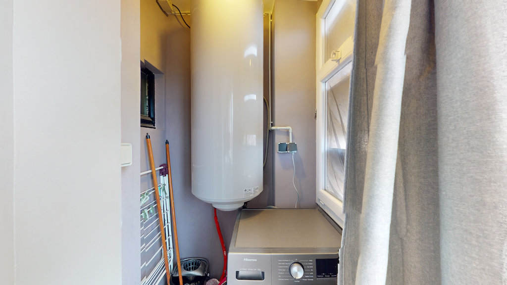 Un espace buanderie avec machine à laver est présent au niveau de la cuisine.